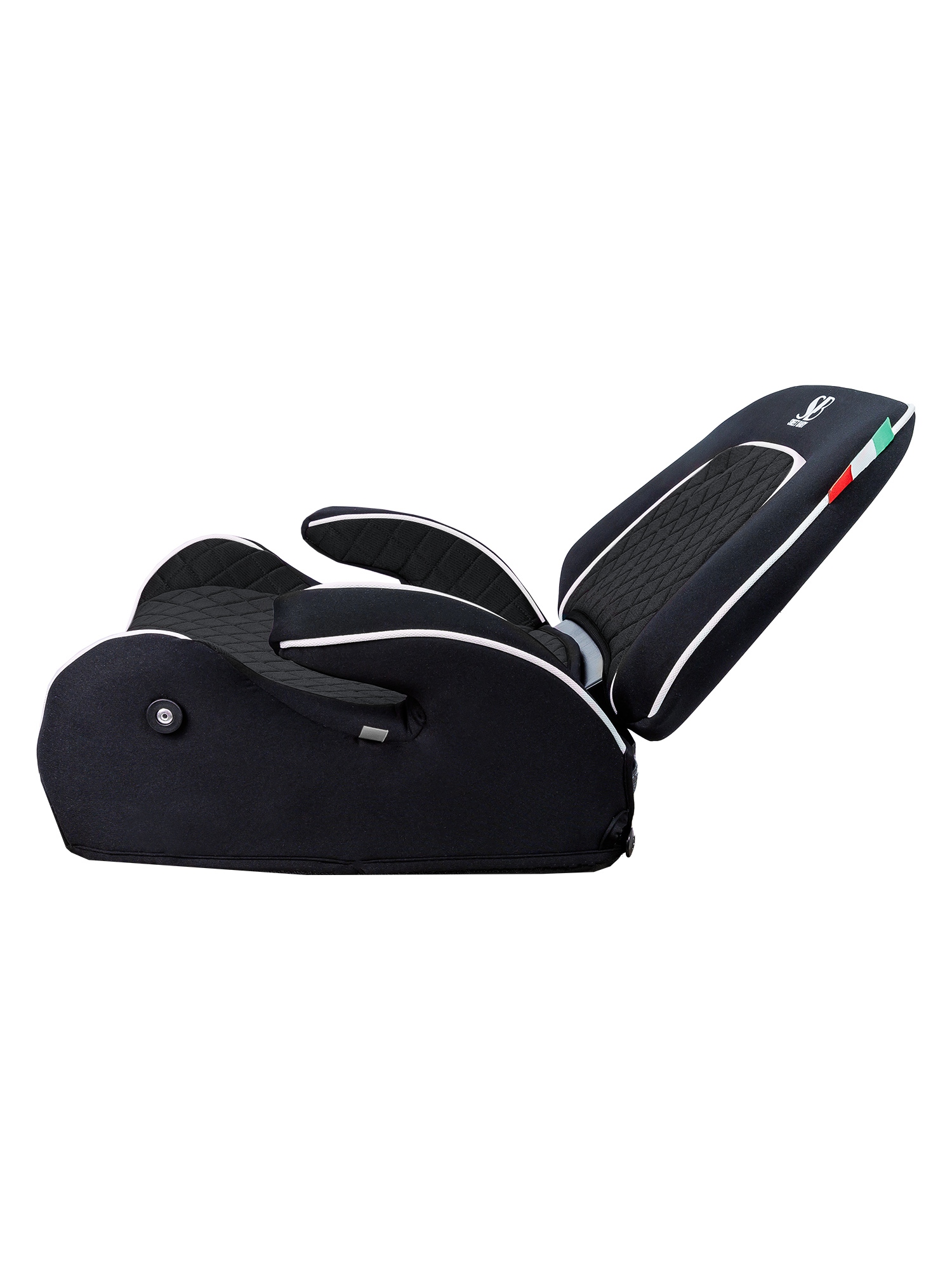 Обладая габаритами бустера, кресло имеет небольшую эргономичную спинку, изюминка которой в возможности изменения наклона, что обеспечивает дополнительный комфорт. При необходимости спинка легко снимается и кресло может эксплуатироваться без нее.
