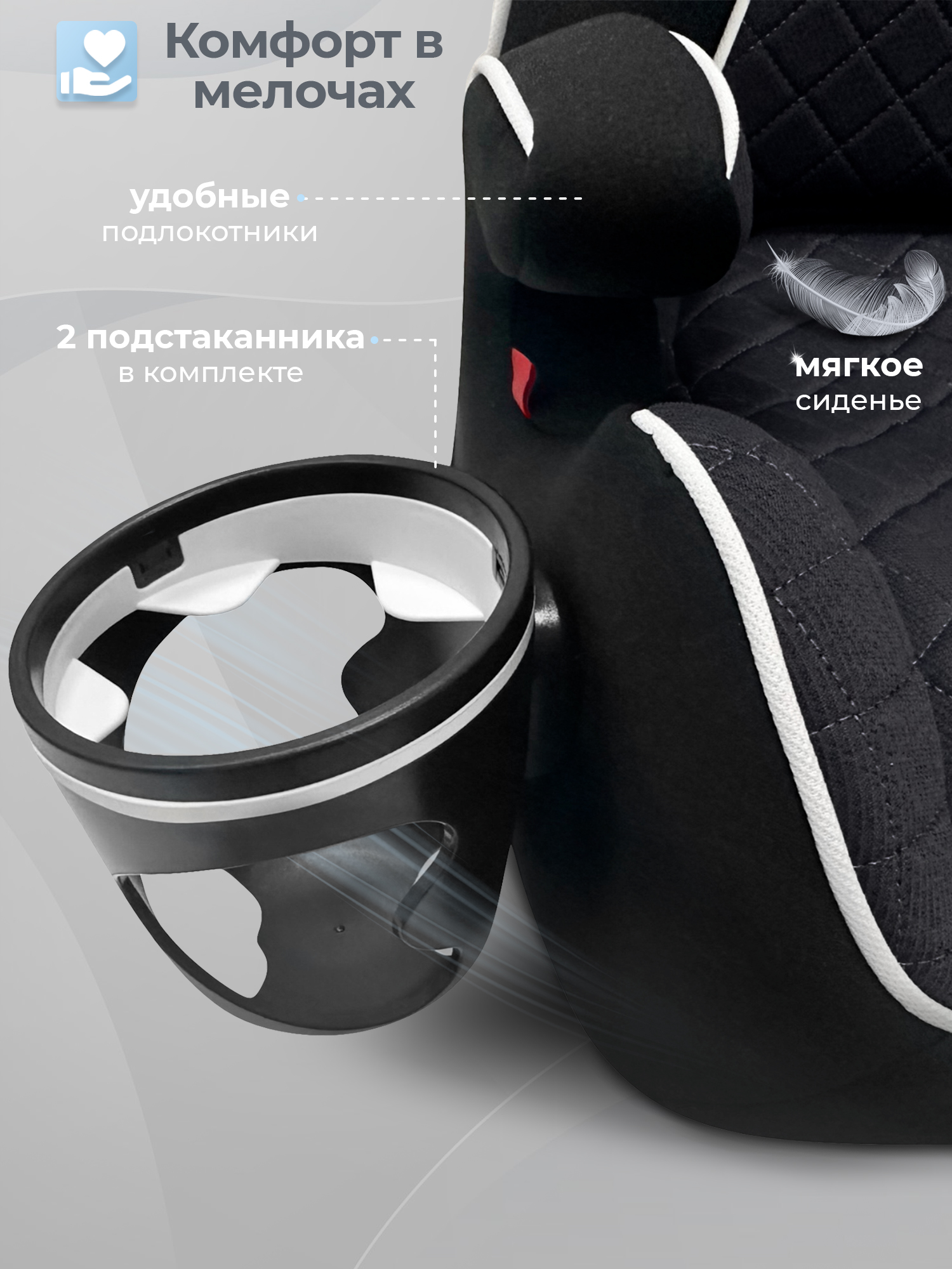 - 2 подстаканника для детей, которые устанавливаются на бустер;