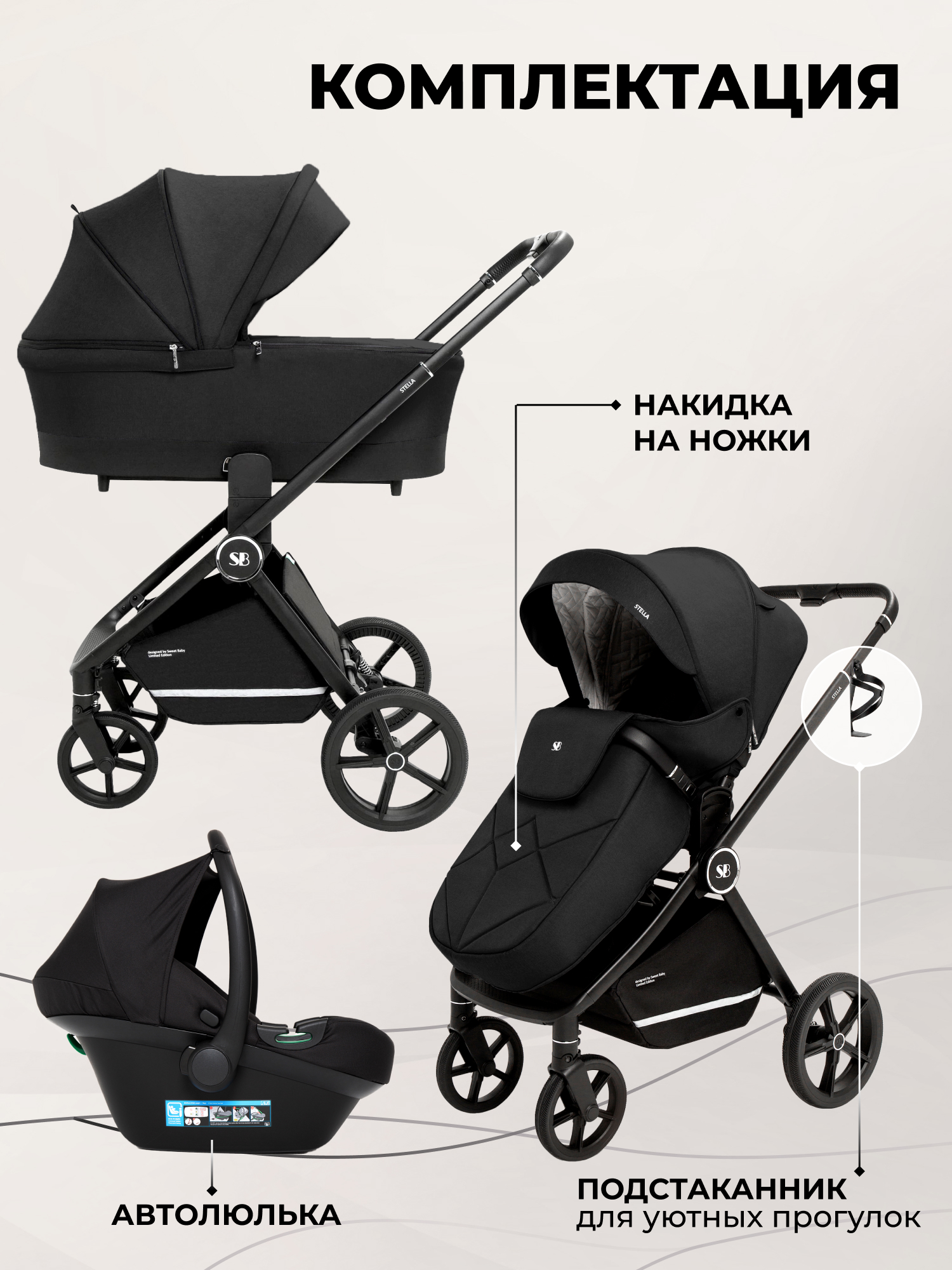 Модульная коляска 3в1 Sweet Baby Stella – практичное решение на любое время года. Эта коляска объединяет в себе прогулочный блок, люльку и автолюльку - переноску, что делает ее универсальной для повседневной жизни.