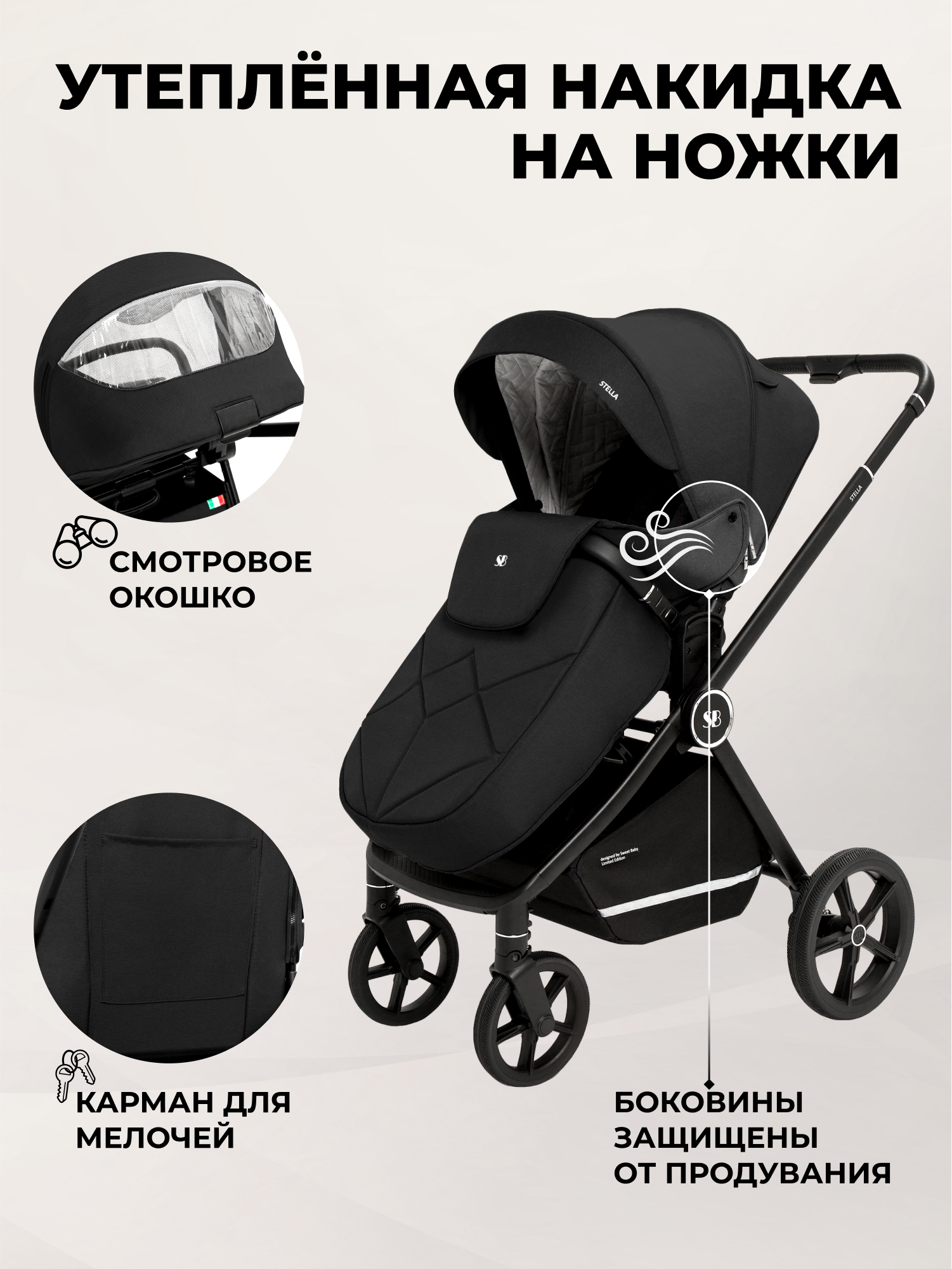 - утепленная накидка укроет ножки маленького пассажира в холодное время года