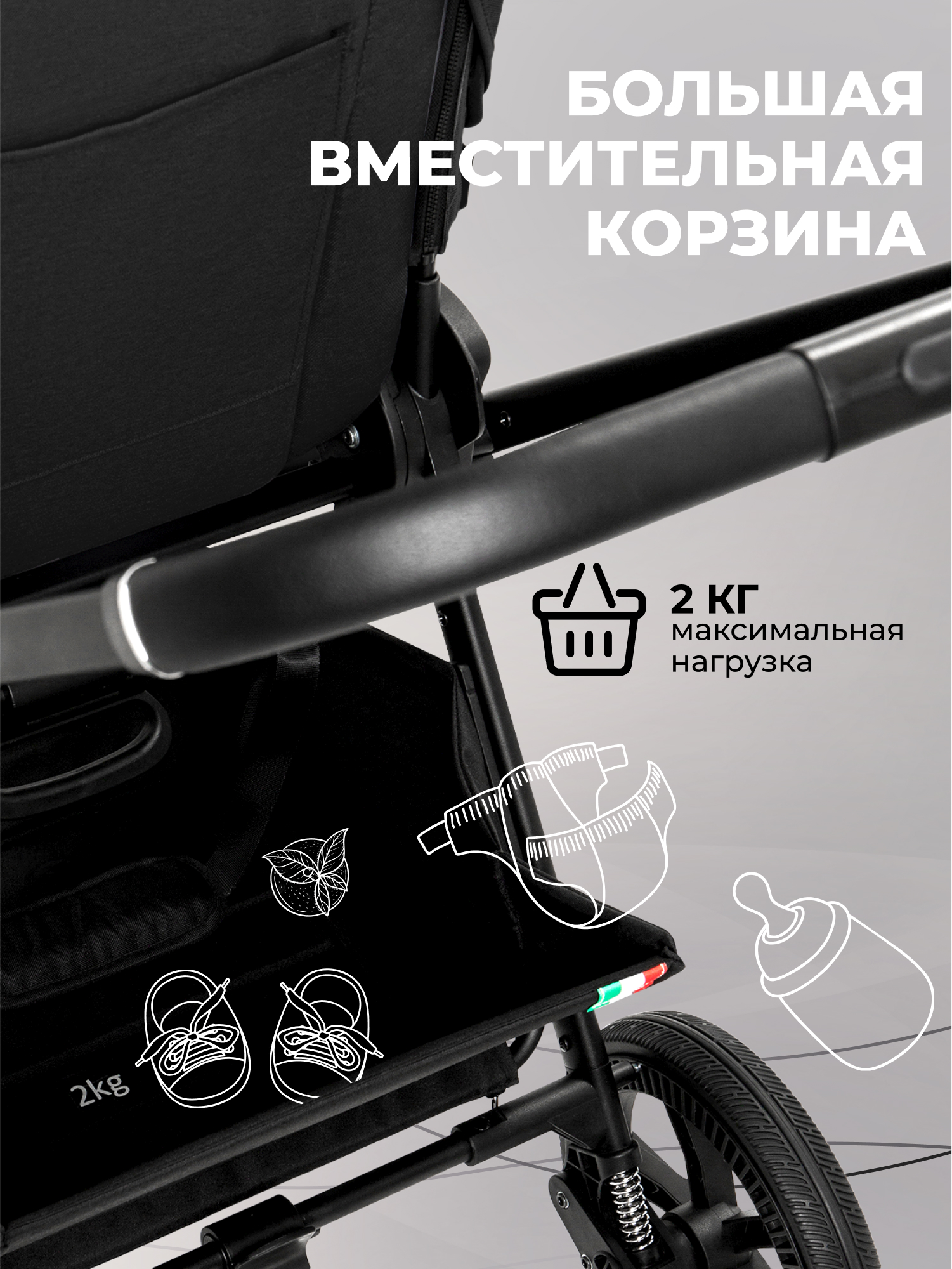- Можно установить на шасси коляски (адаптеры идут в комплекте).