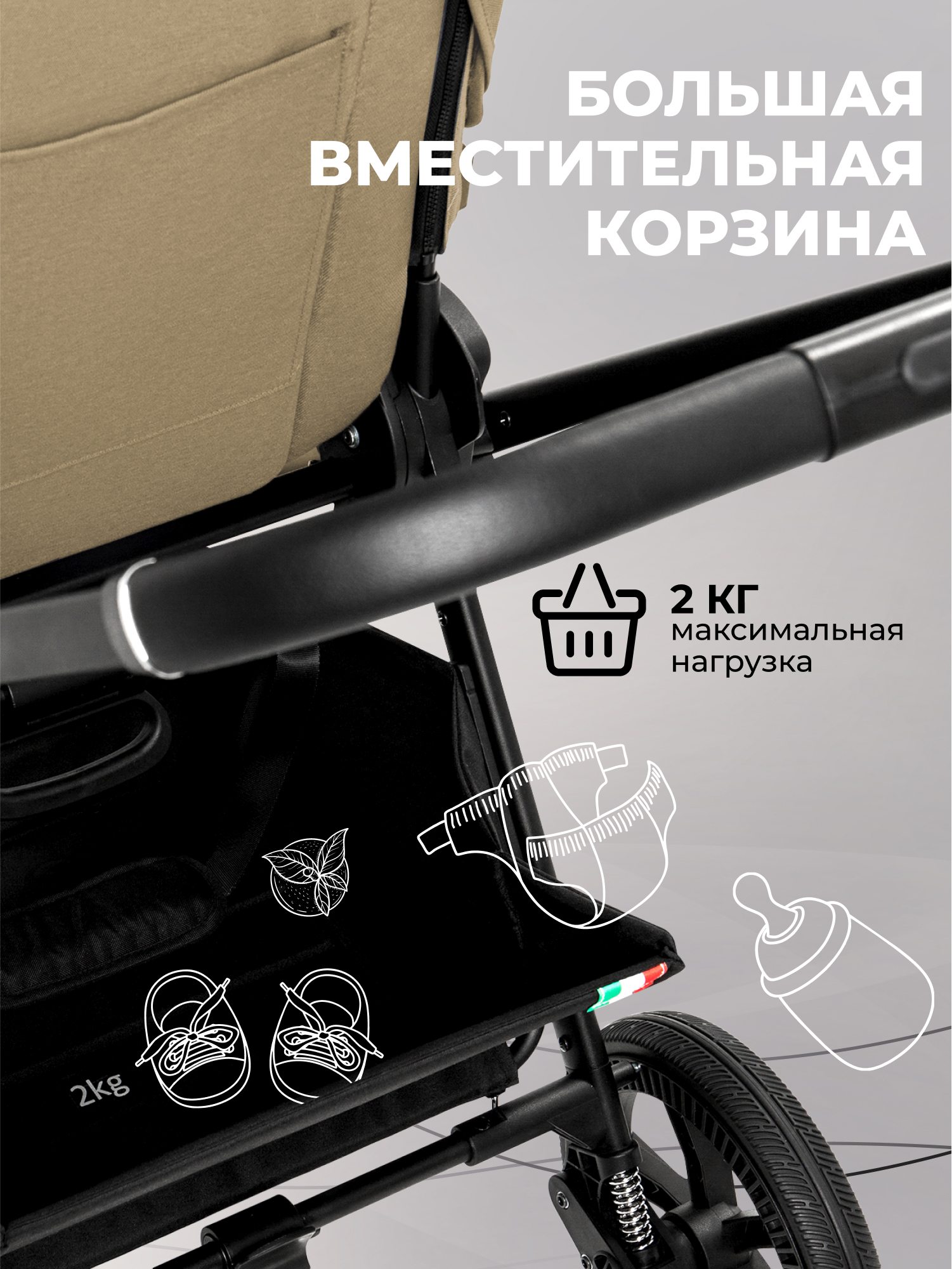 - Можно установить на шасси коляски (адаптеры идут в комплекте).