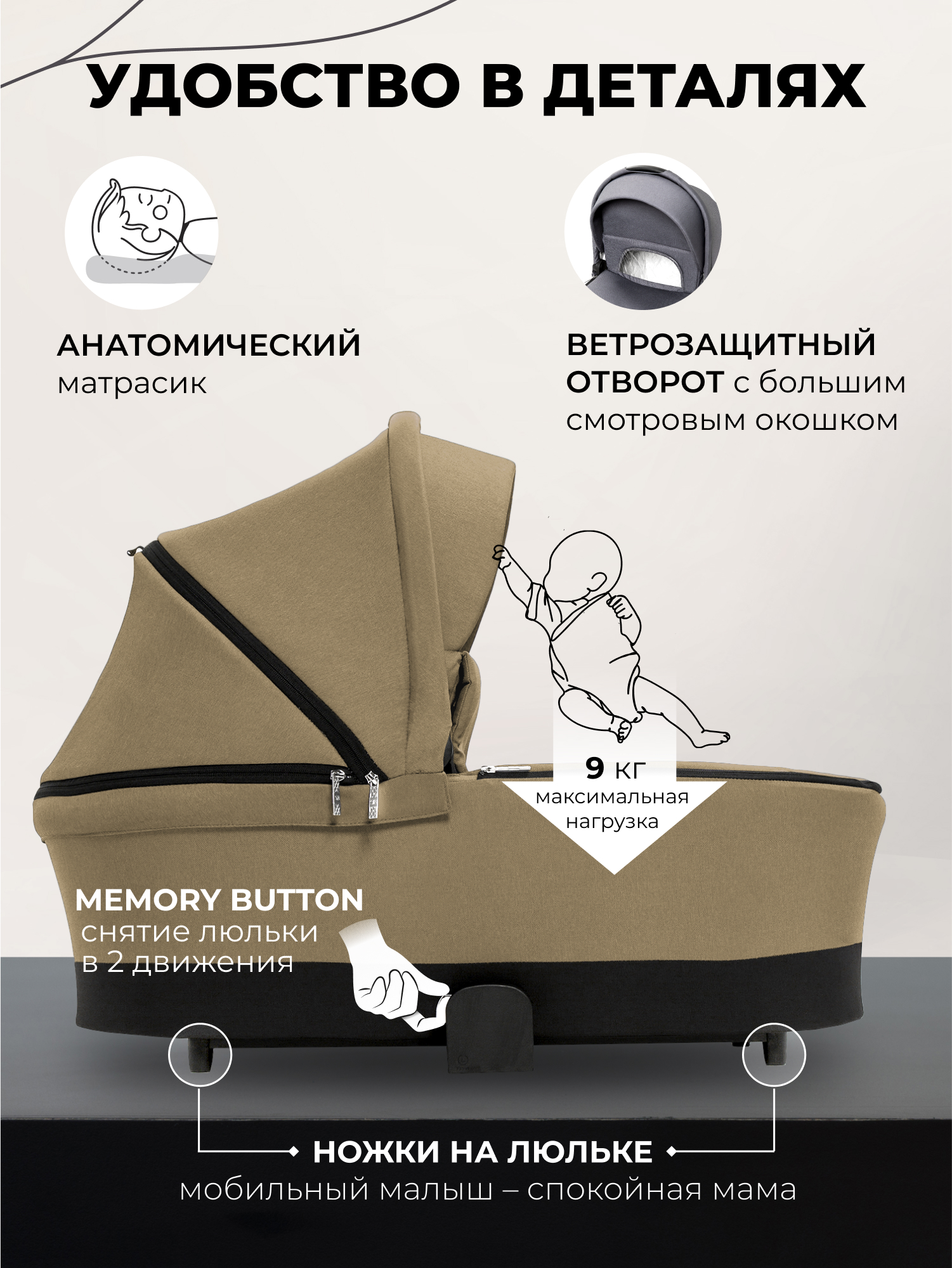 - система Memory Button c помощью которой вы сможете быстро установить и снять люльку