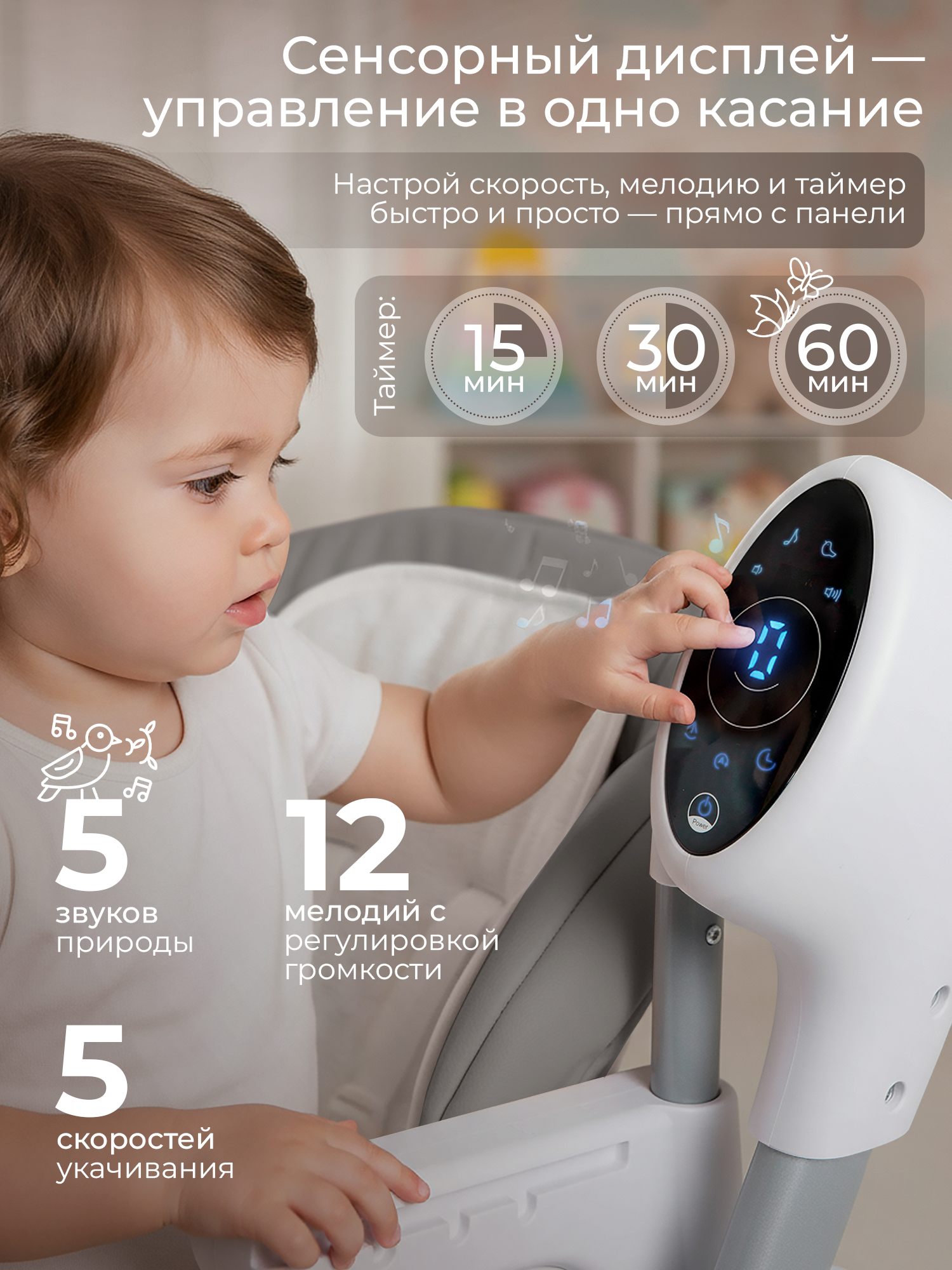 - 5 скоростей укачивания;
