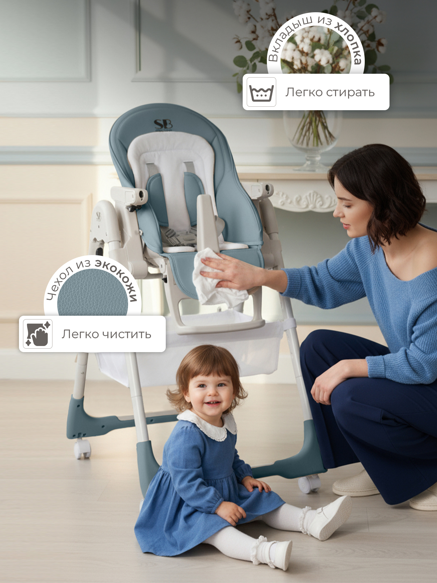 Стульчик SWEET BABY City очень устойчив, благодаря прочному каркасу с нескользящими накладками, что обеспечивает максимальную безопасность.