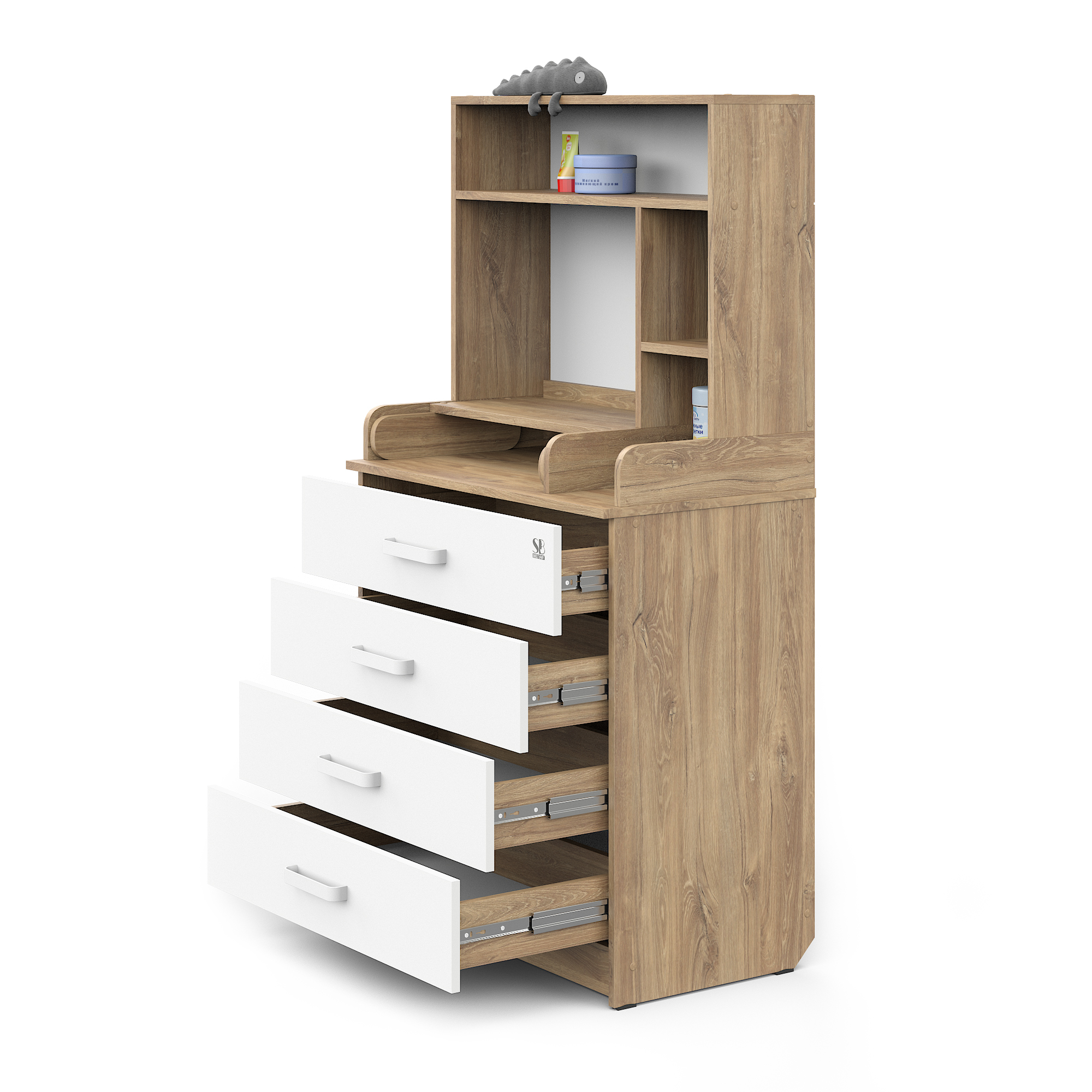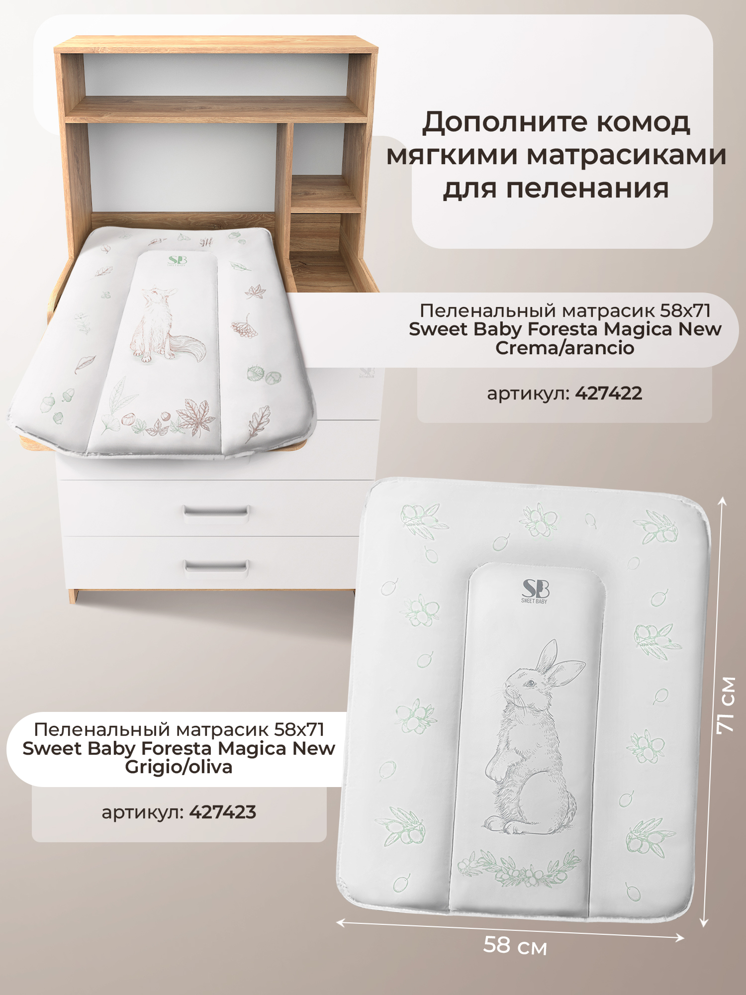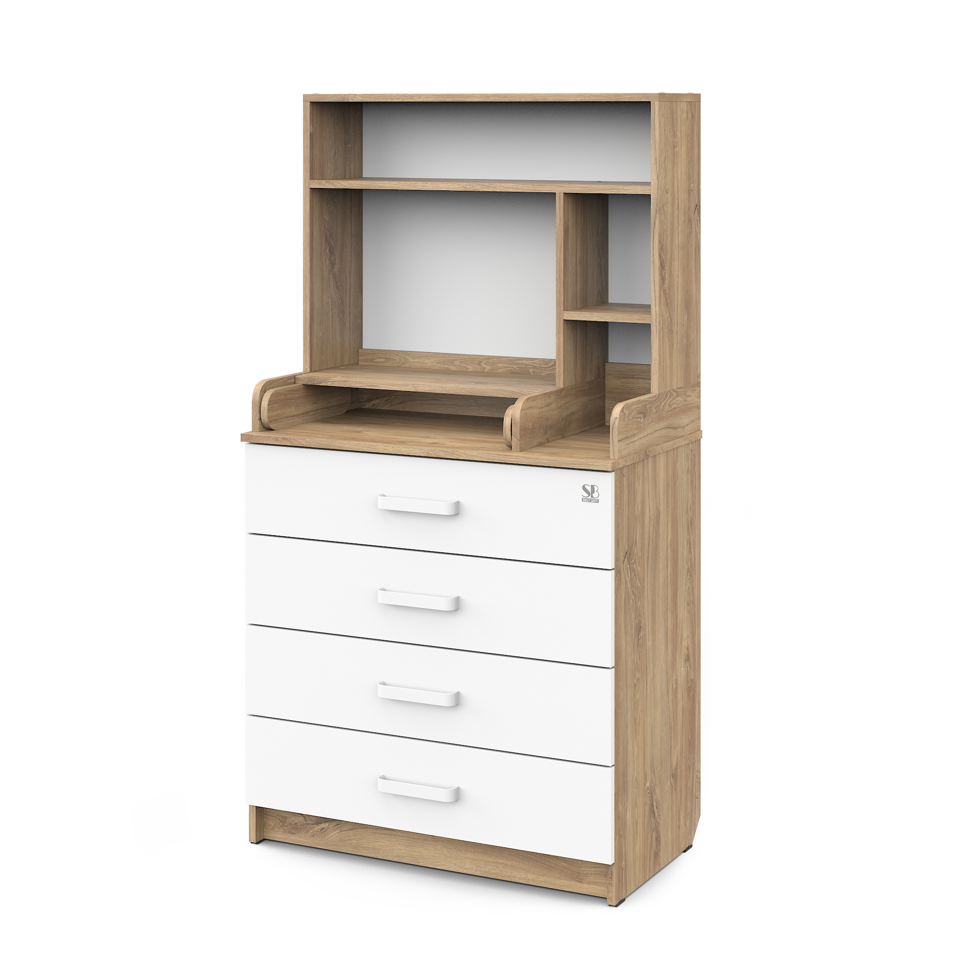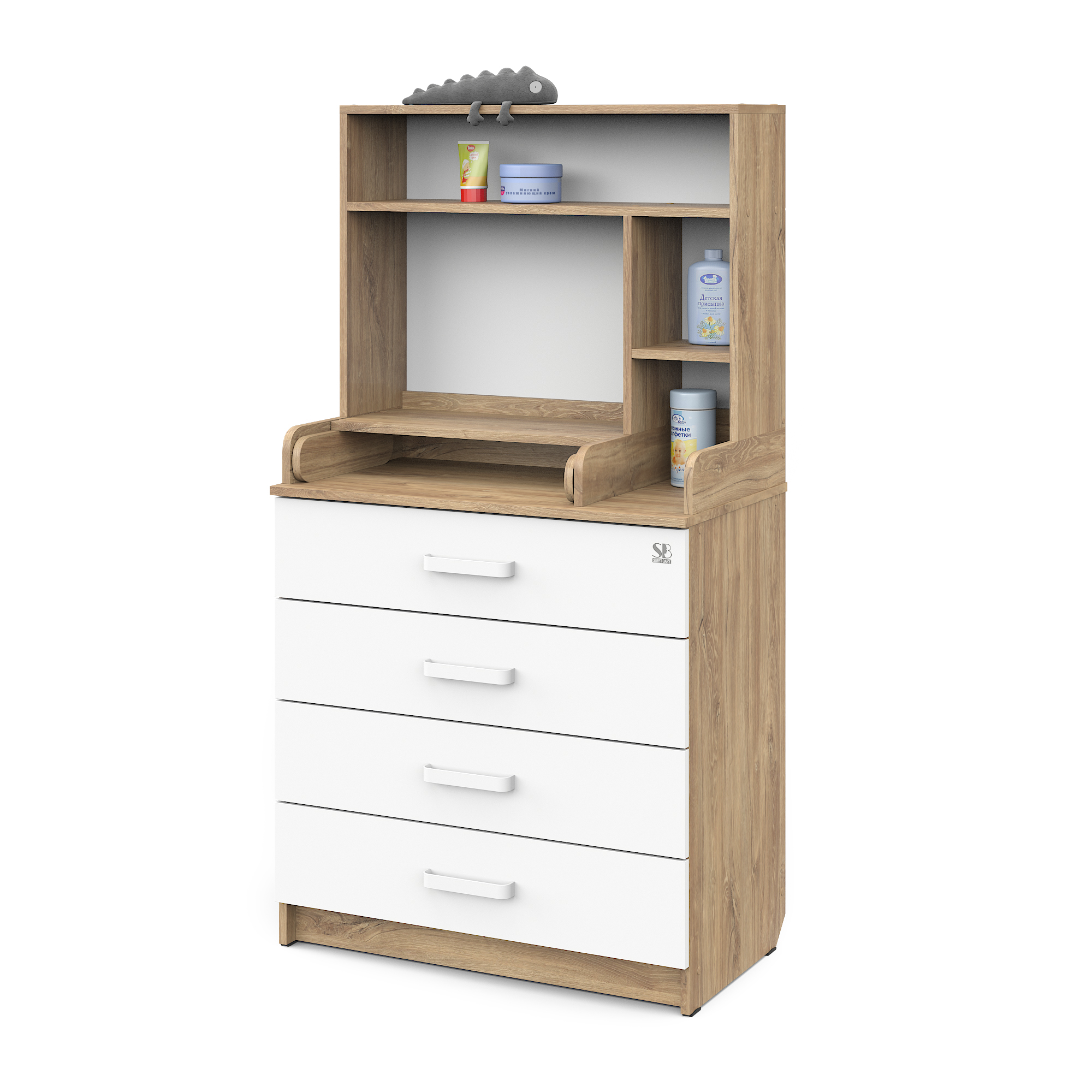 Sweet Baby выпустил удобный комод с полкой Sweet Baby Albero, комод шириной 80 см с откидным пеленальным столиком и четырьмя вместительными ящиками для хранения.