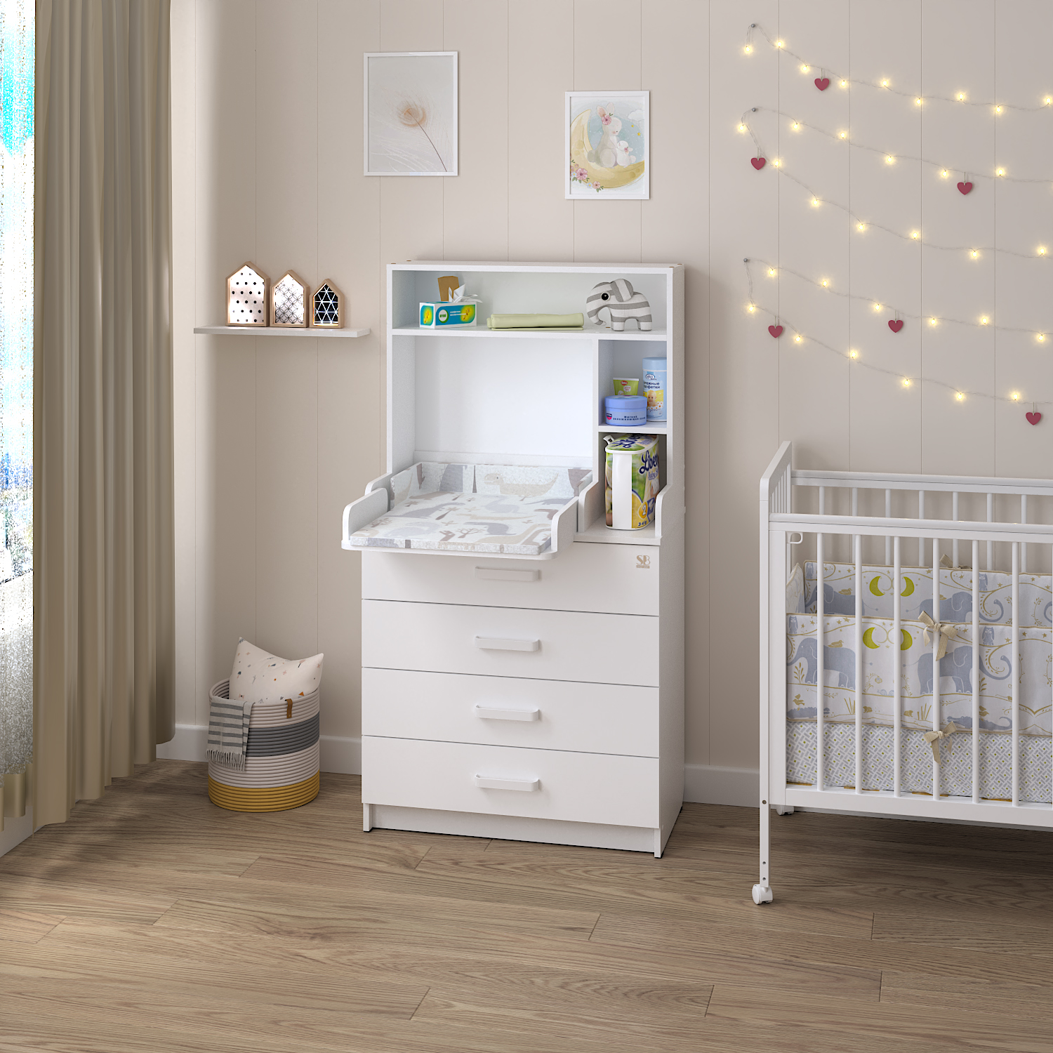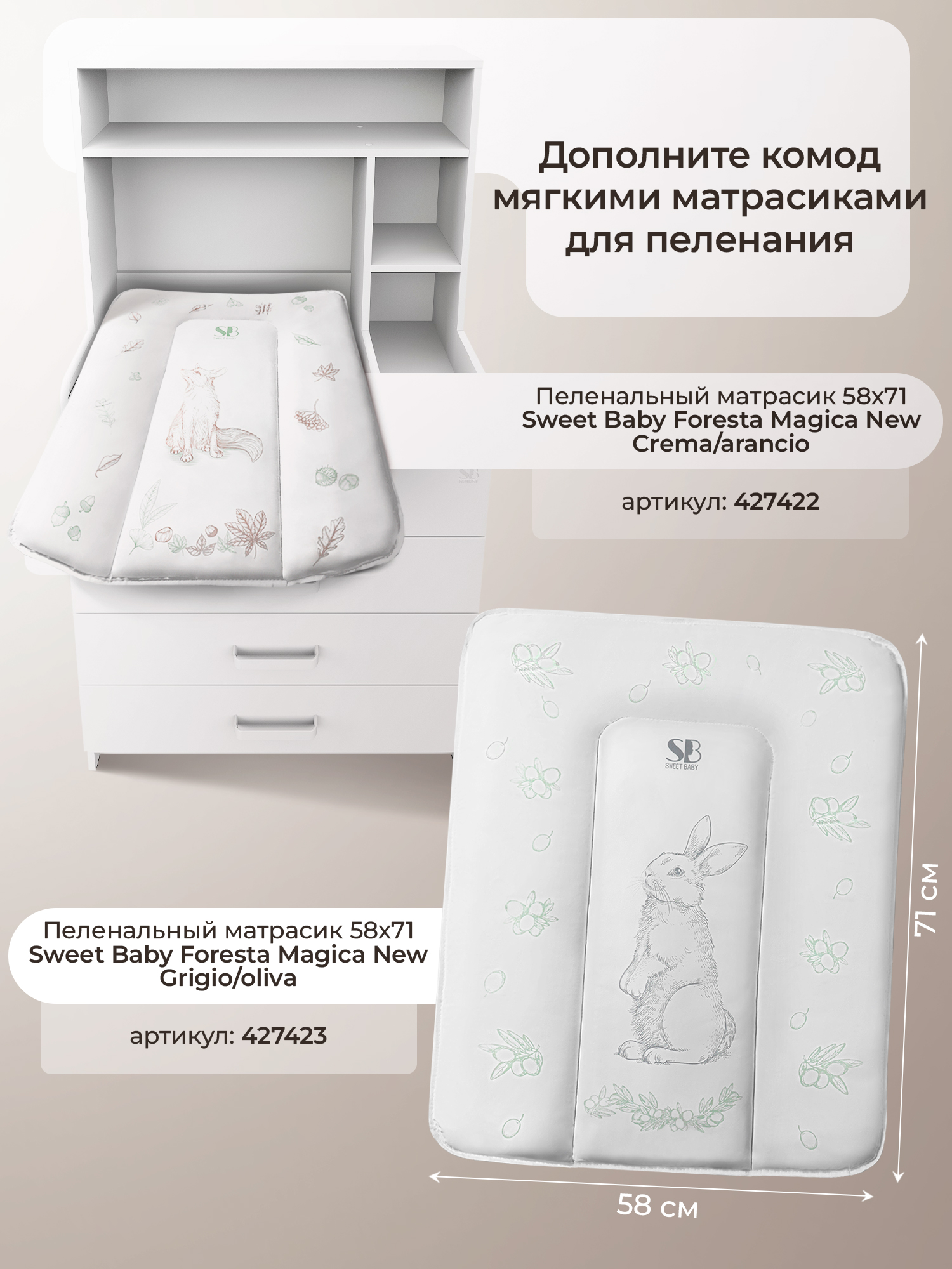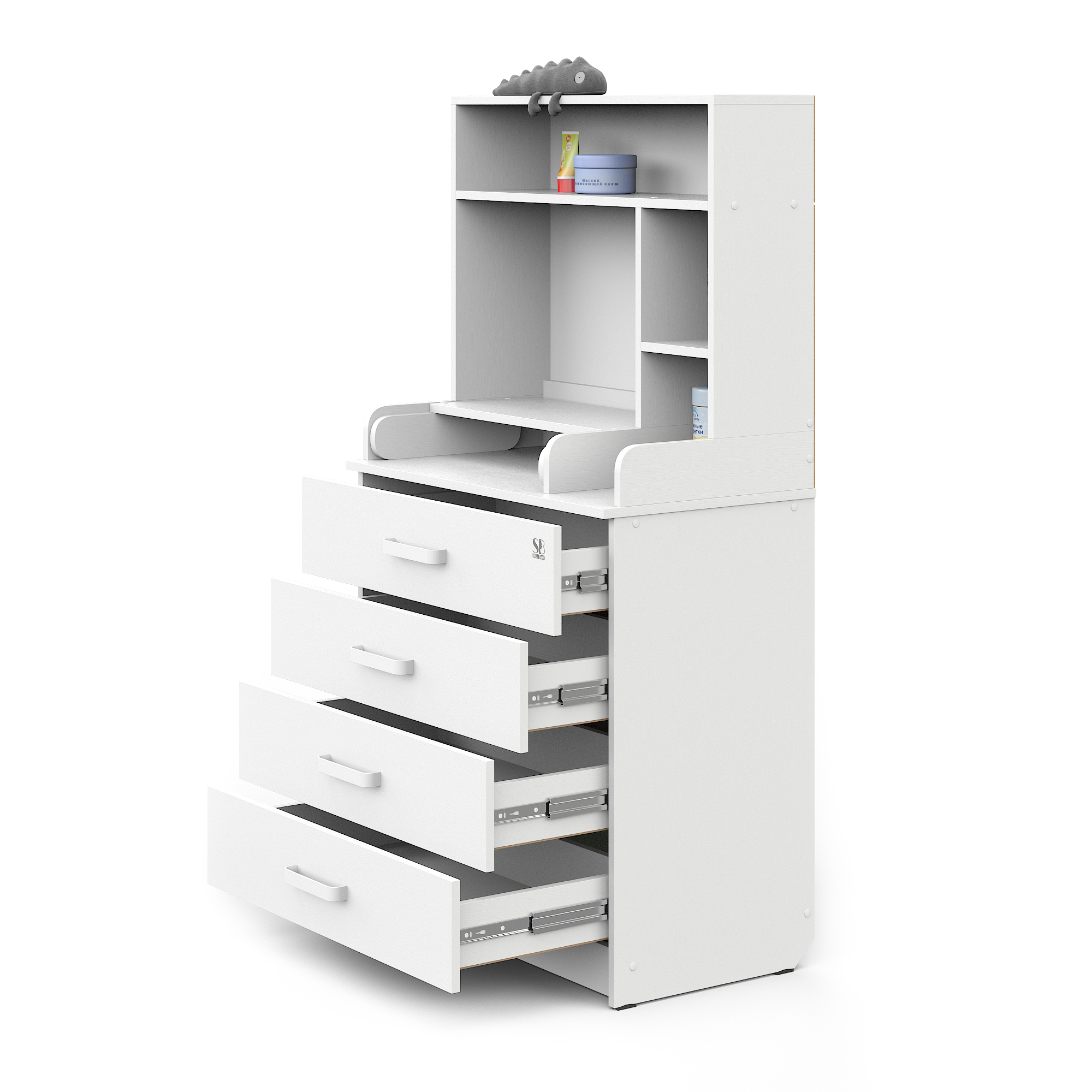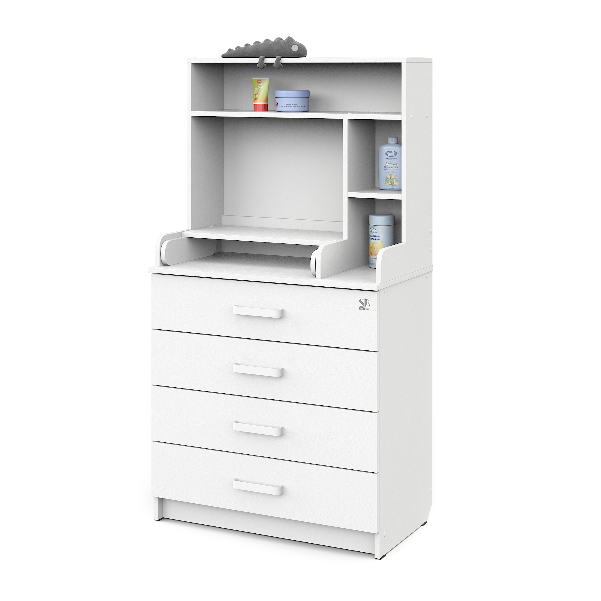 Sweet Baby выпустил удобный комод с полкой Sweet Baby Albero, комод шириной 80 см с откидным пеленальным столиком и четырьмя вместительными ящиками для хранения.