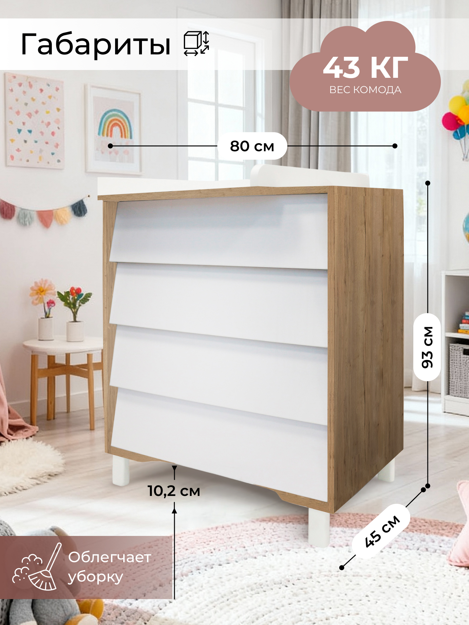 - бортик для пеленания – съемный, благодаря чему вы сможете использовать комод, как классический, когда ваш ребенок подрастет