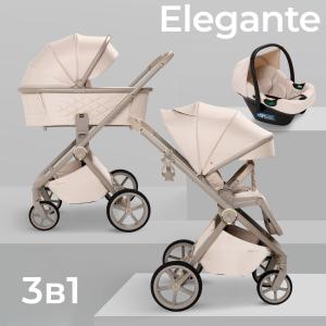 Максимальная комплектация: в комплект коляски Elegante 3в1 входят: шасси, прогулочный блок, люлька, матрасик для люльки, накидка на ножки, дождевик, москитная сетка, подстаканник, адаптеры для люльки, автолюлька, адаптеры для автолюльки
