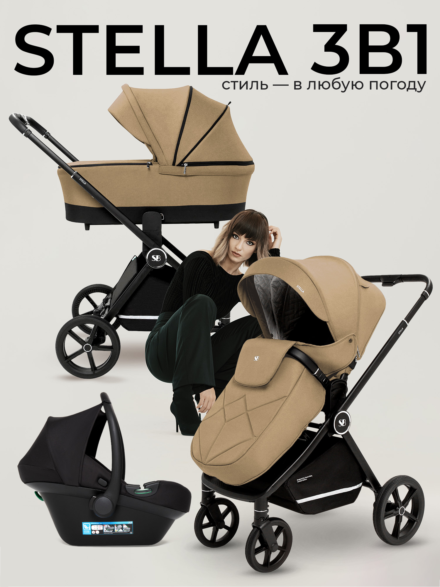 Модульная коляска 3в1 Sweet Baby Stella – практичное решение на любое время года. Эта коляска объединяет в себе прогулочный блок, люльку и автолюльку - переноску, что делает ее универсальной для повседневной жизни.