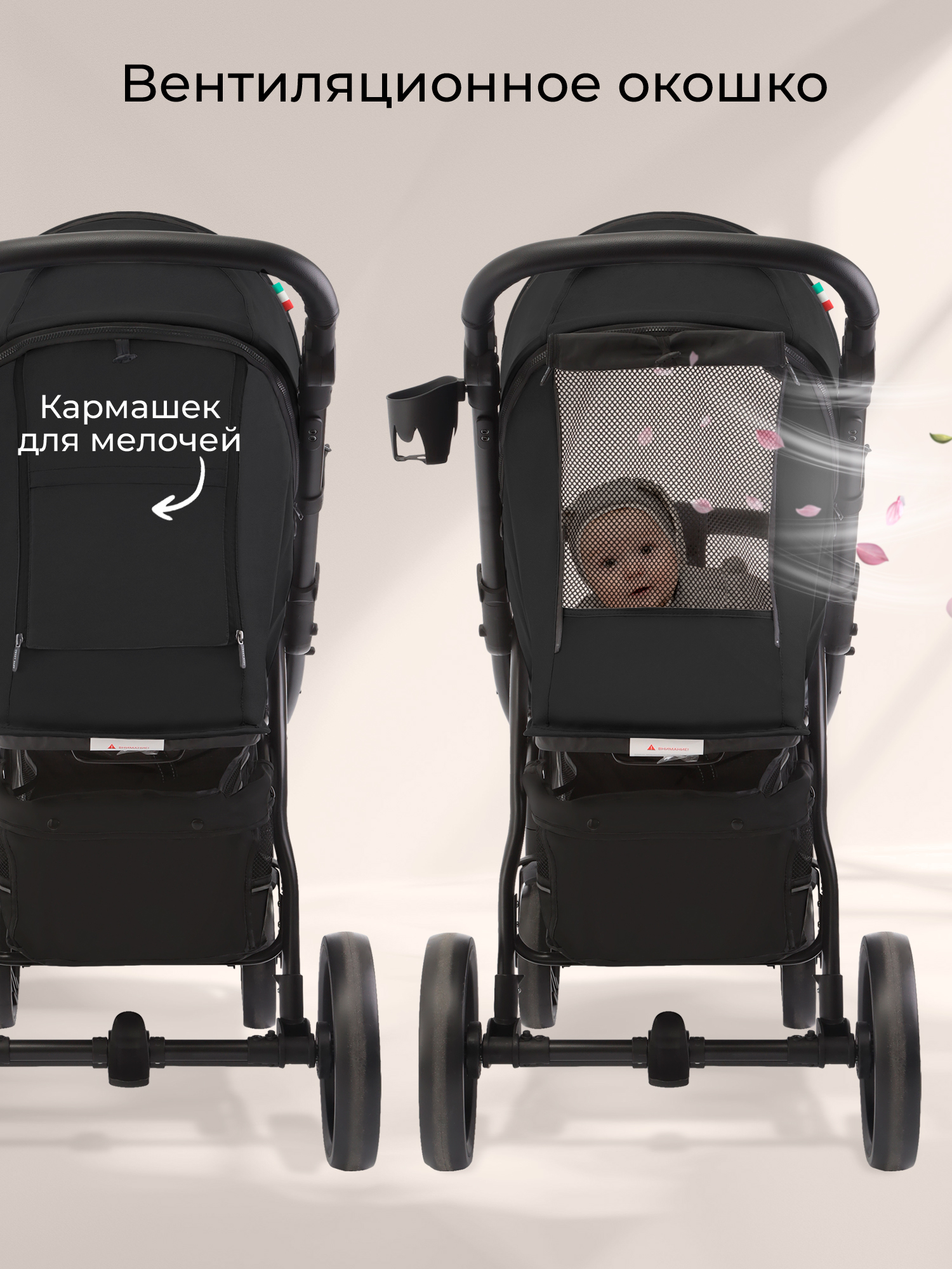 Помимо этого, коляска имеет большую и вместительную корзину, съемный бампер, разделитель для ножек, карман для мелочей на капюшоне и держатель подстаканника.