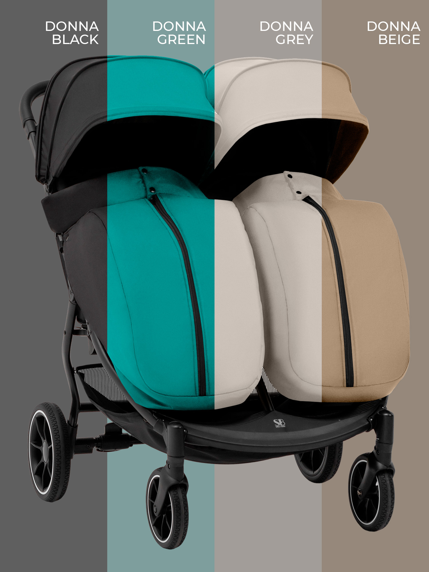 Представляем вам стильную и современную коляску Sweet Baby Donna - идеальный выбор для двойни или близнецов, которую можно использовать круглый год.