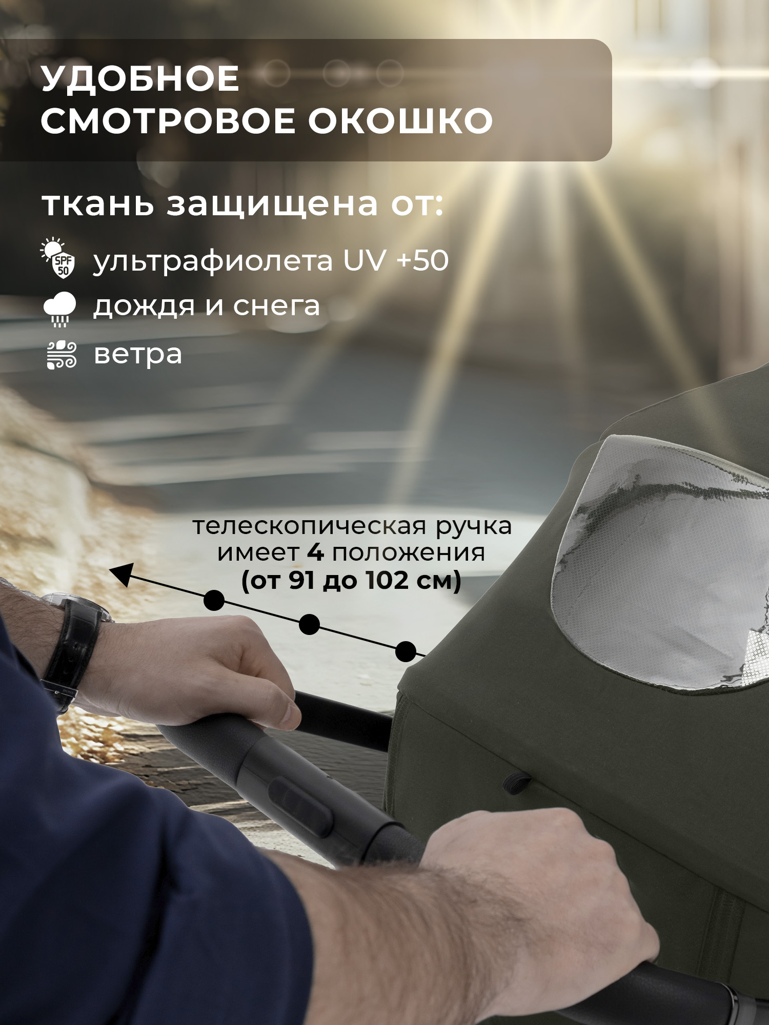 Созданная с акцентом на детали, Elegante S оснащена телескопической ручкой, которая подстраивается под любой рост родителей, и глубоким капором с дополнительной секцией на молнии, который надежно защитит малыша от солнечных лучей и любопытных глаз во время прогулки.