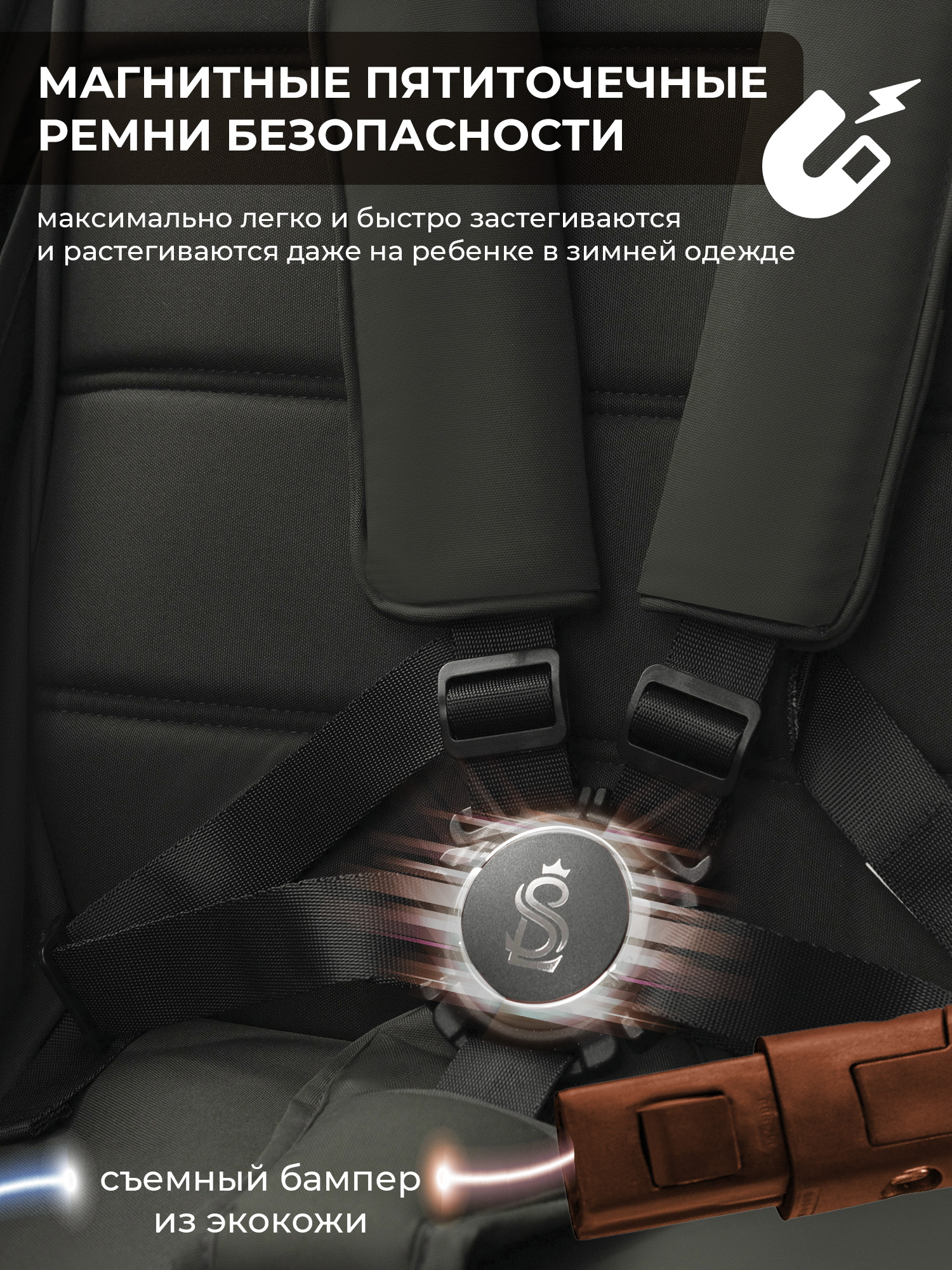 Безопасность вашего малыша обеспечивают магнитные ремни (что очень удобно, так как малыш фиксируется одним нажатием), мягкие накладки, которые добавляют комфорт во время движения, а межпаховая перемычка усиливает безопасность. Отстегивающийся бампер позволяет легко усаживать малыша.