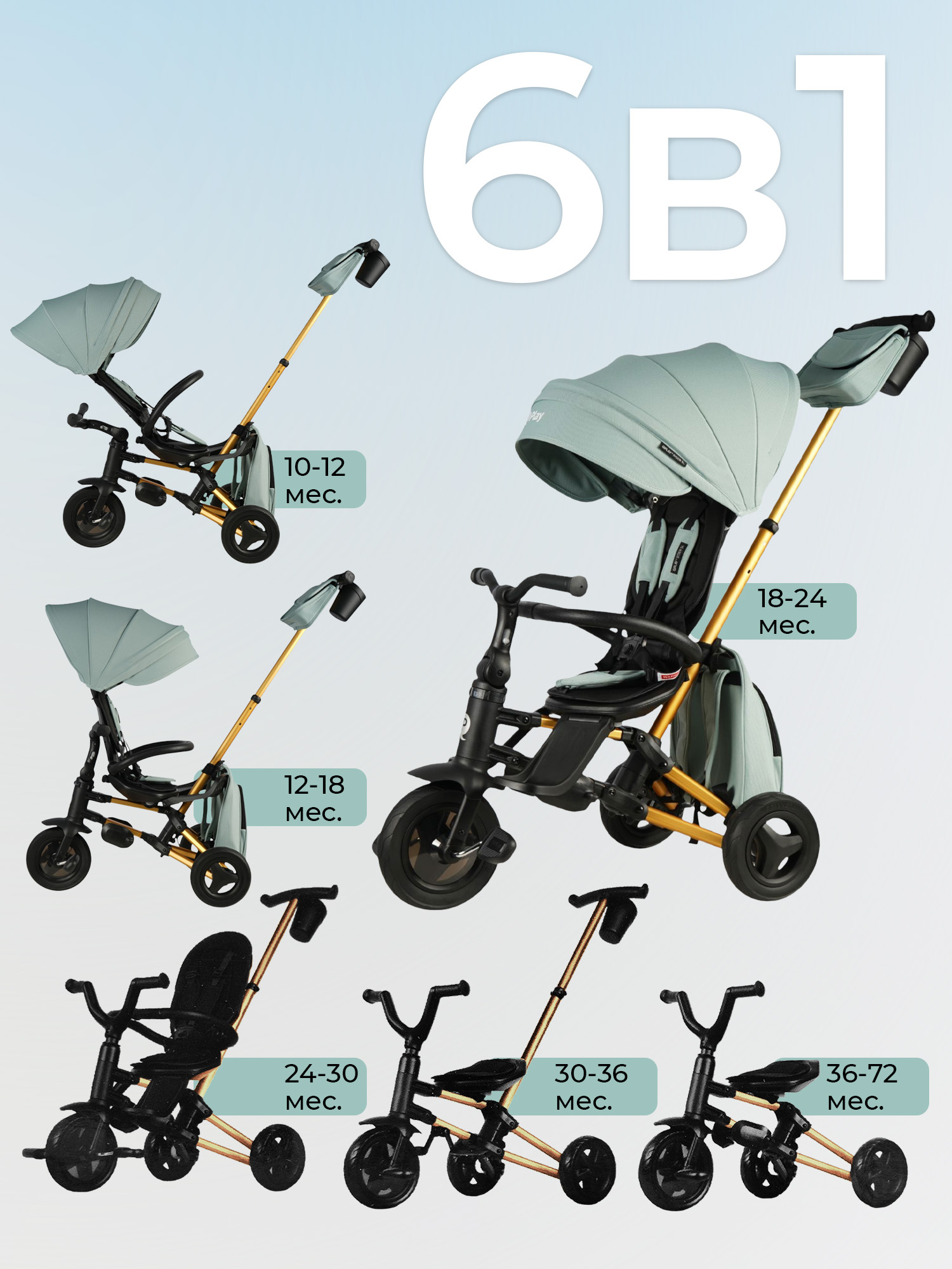 - Целых 6 вариантов использования: велосипед коляска для малышей легко трансформируется в трехколесный велосипед для подросших детей;