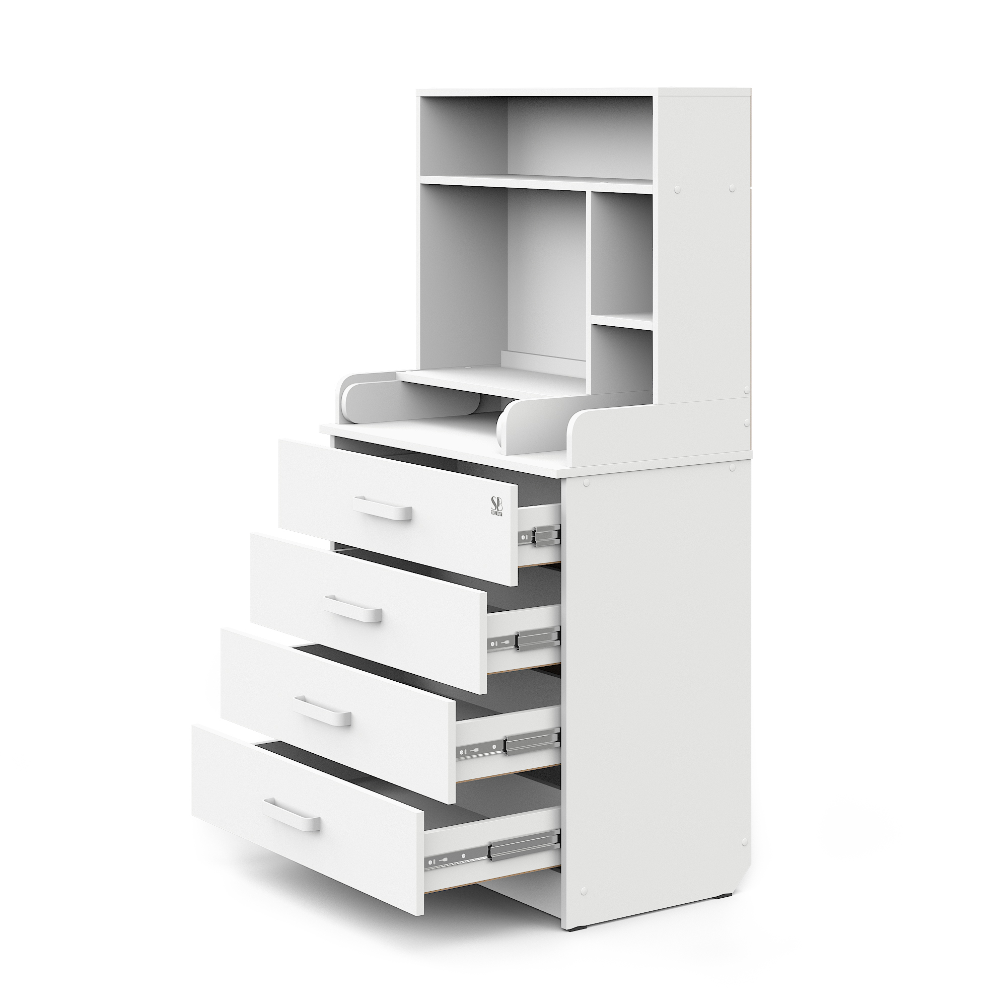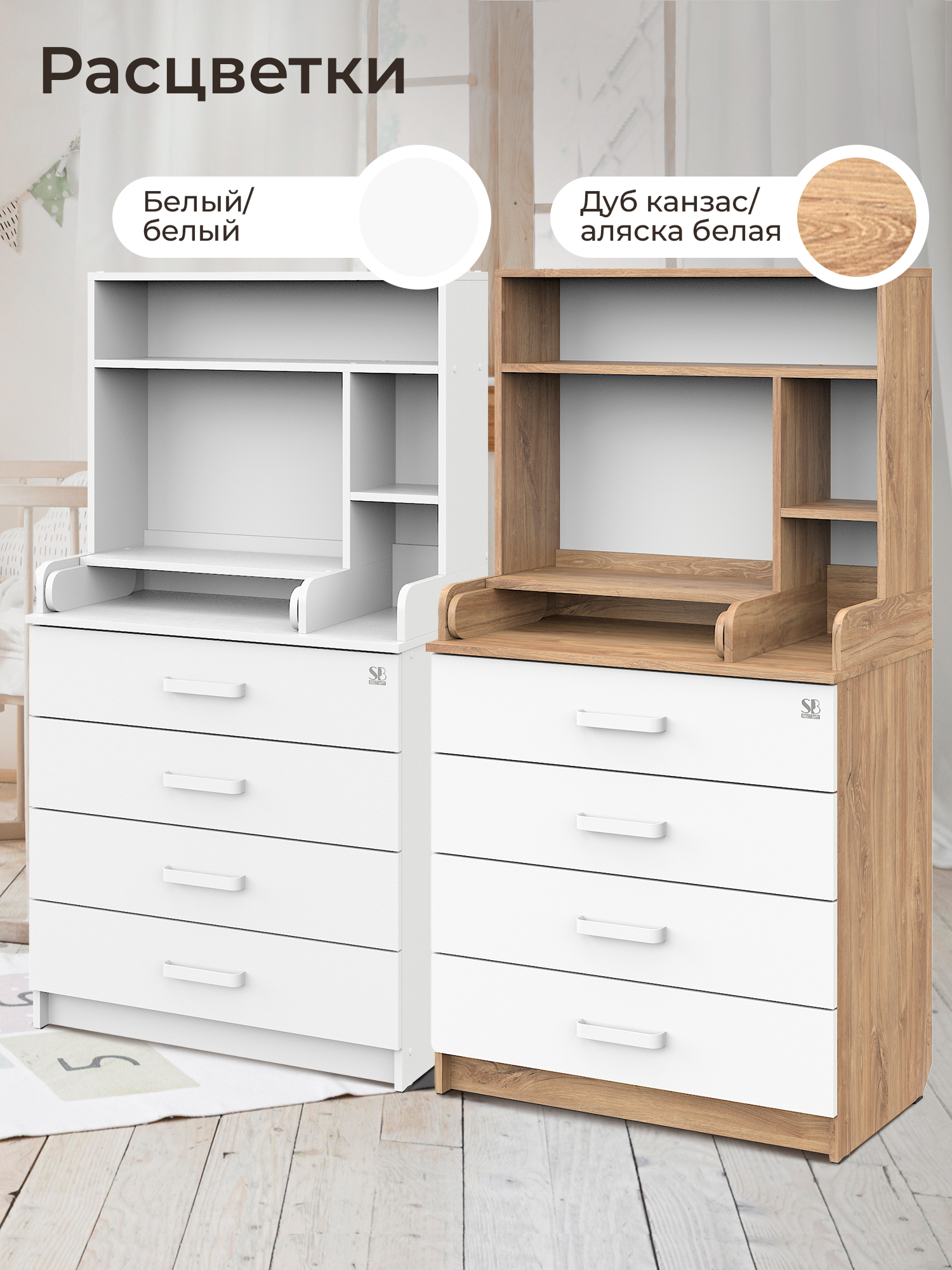 Sweet Baby выпустил удобный комод с полкой Sweet Baby Albero, комод шириной 80 см с откидным пеленальным столиком и четырьмя вместительными ящиками для хранения.