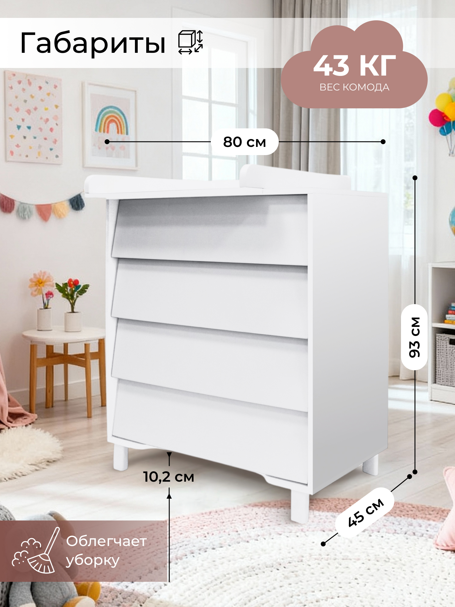 - бортик для пеленания – съемный, благодаря чему вы сможете использовать комод, как классический, когда ваш ребенок подрастет