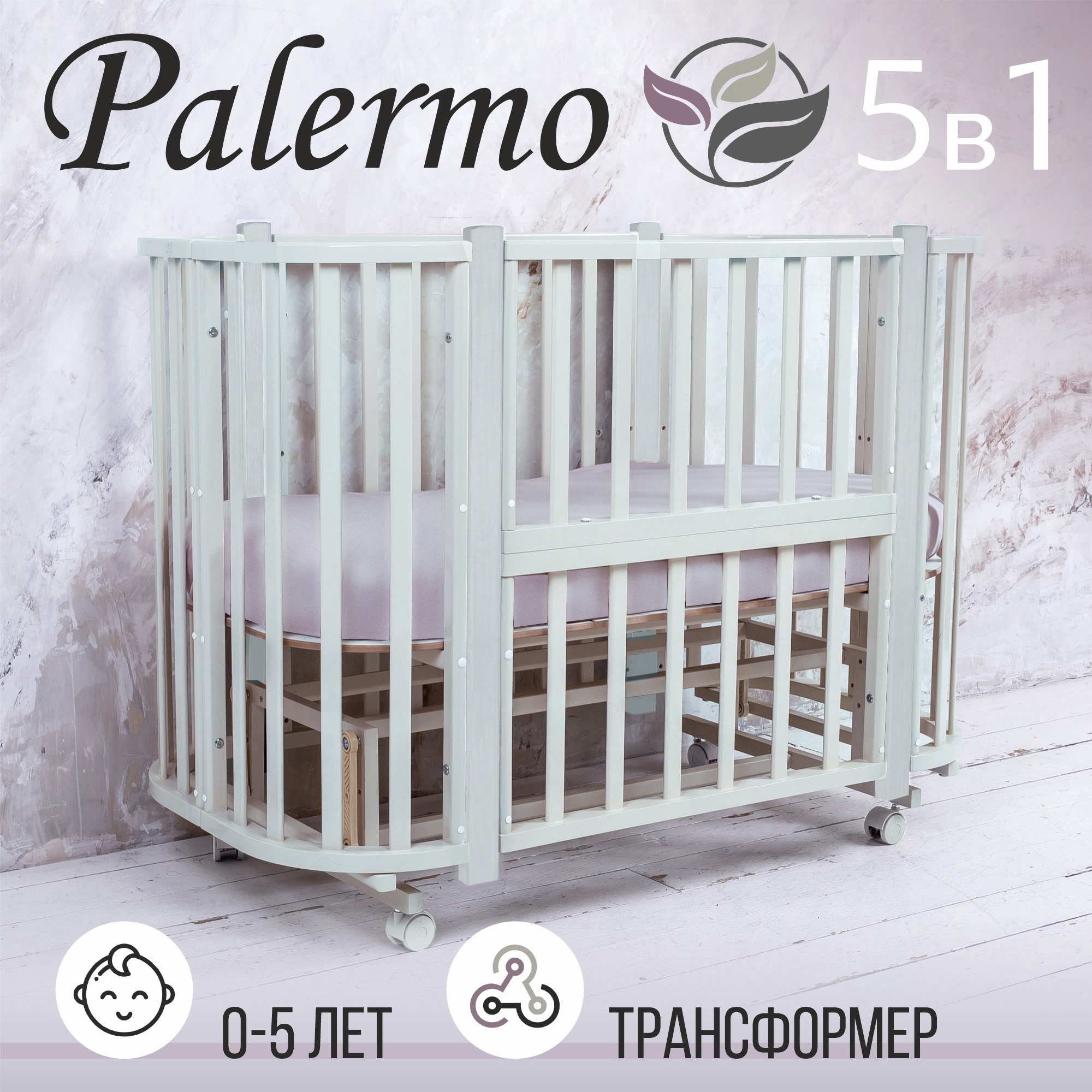 Благодаря функции расширения кроватка Palermo имеет два положения по длине: колыбель для новорожденных и кроватка для дошкольников.