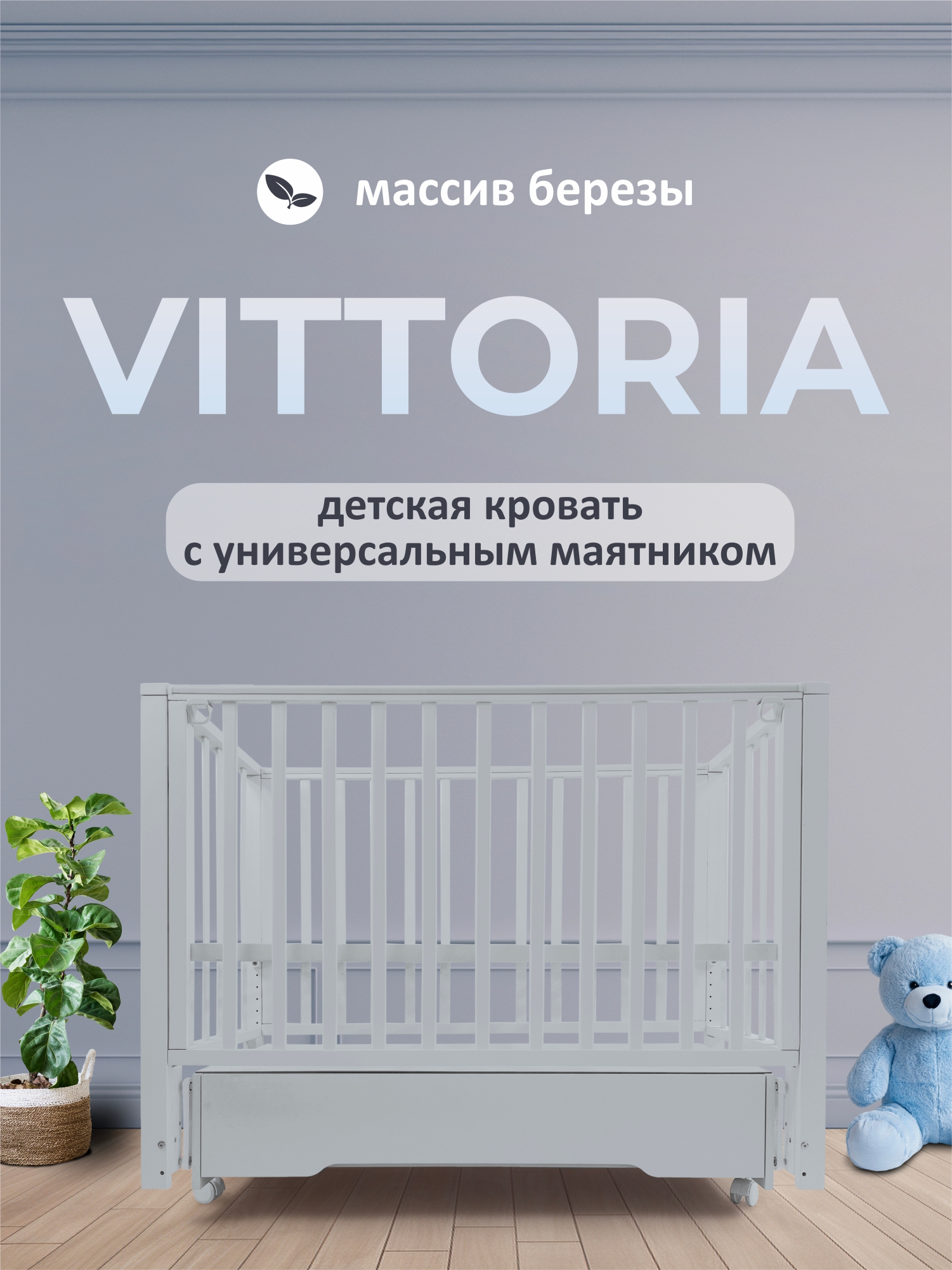 Детская кровать с маятником и ящиком Sweet Baby Vittoria подарит сладкие и теплые сны вашему малышу, а также отлично впишется под любой интерьер. Эта кровать для новорожденных выполнена из прочного массива березы и ЛДСП, что гарантирует ей долговечность и прочность.